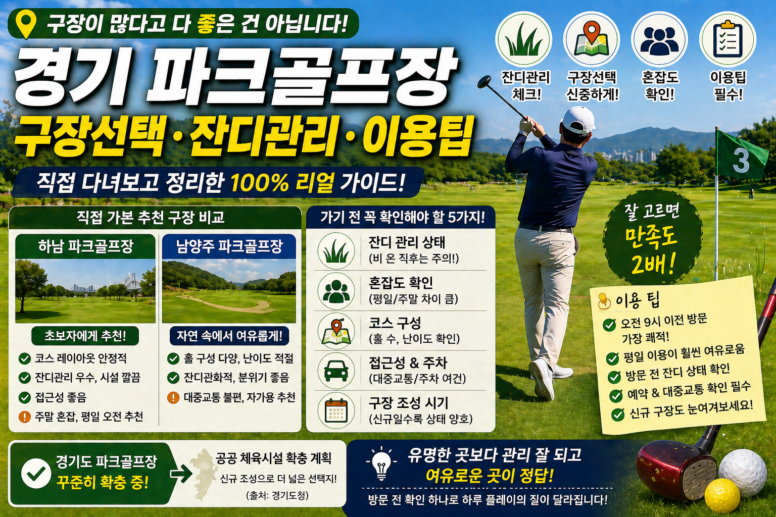 경기도 내 파크골프장은 서울에 비해 선택지가 훨씬 넓습니다. 그런데 직접 이용해보면 구장마다 시설 편차가 꽤 크다는 걸 금방 느끼게 됩니다. 처음에는 그냥 집에서 가깝고 후기 많은 곳으로 골랐는데, 그게 오히려 독이 됐습니다.