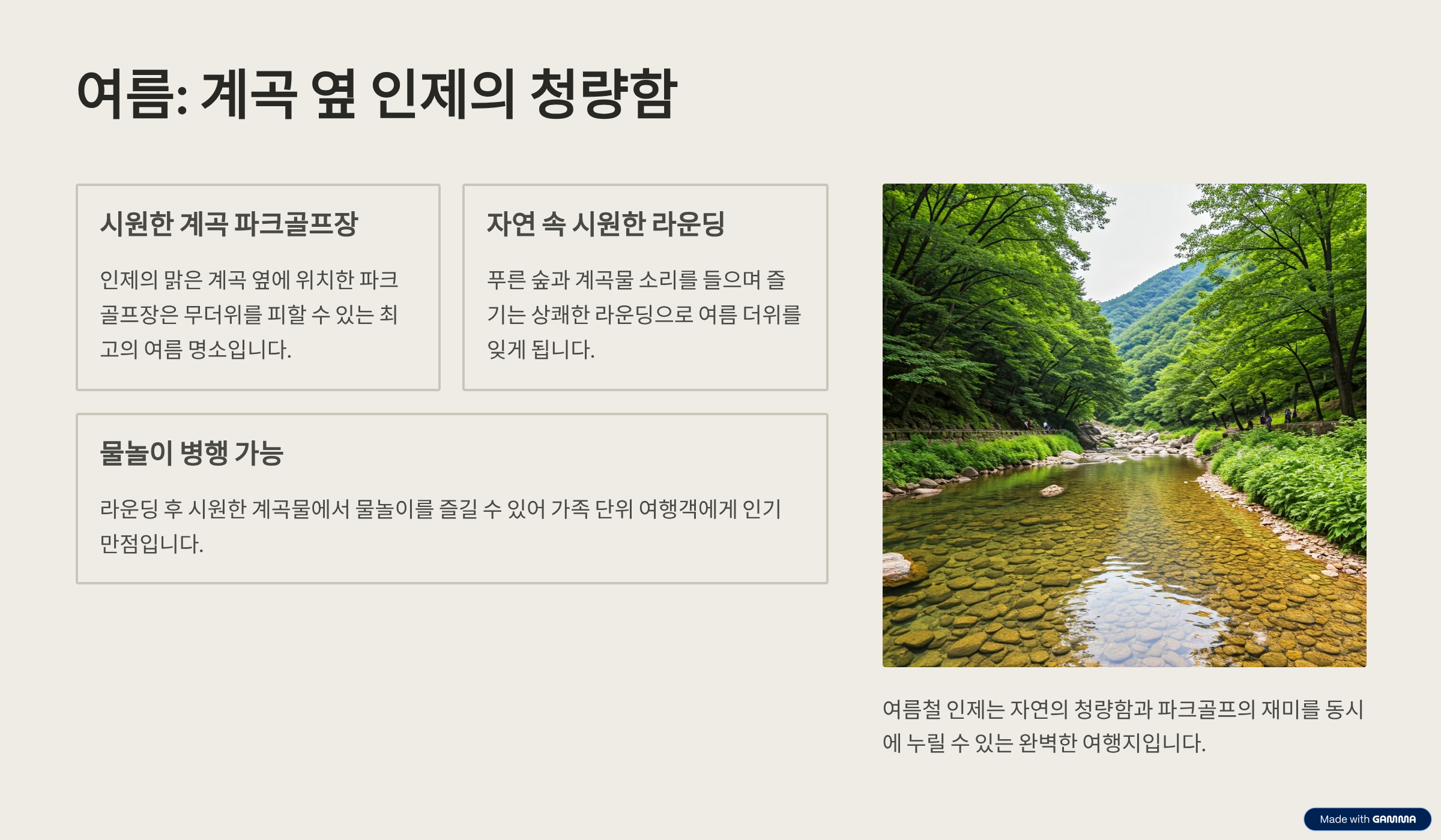 | 여름 | 인제 내린천 | 계곡 옆 코스 |