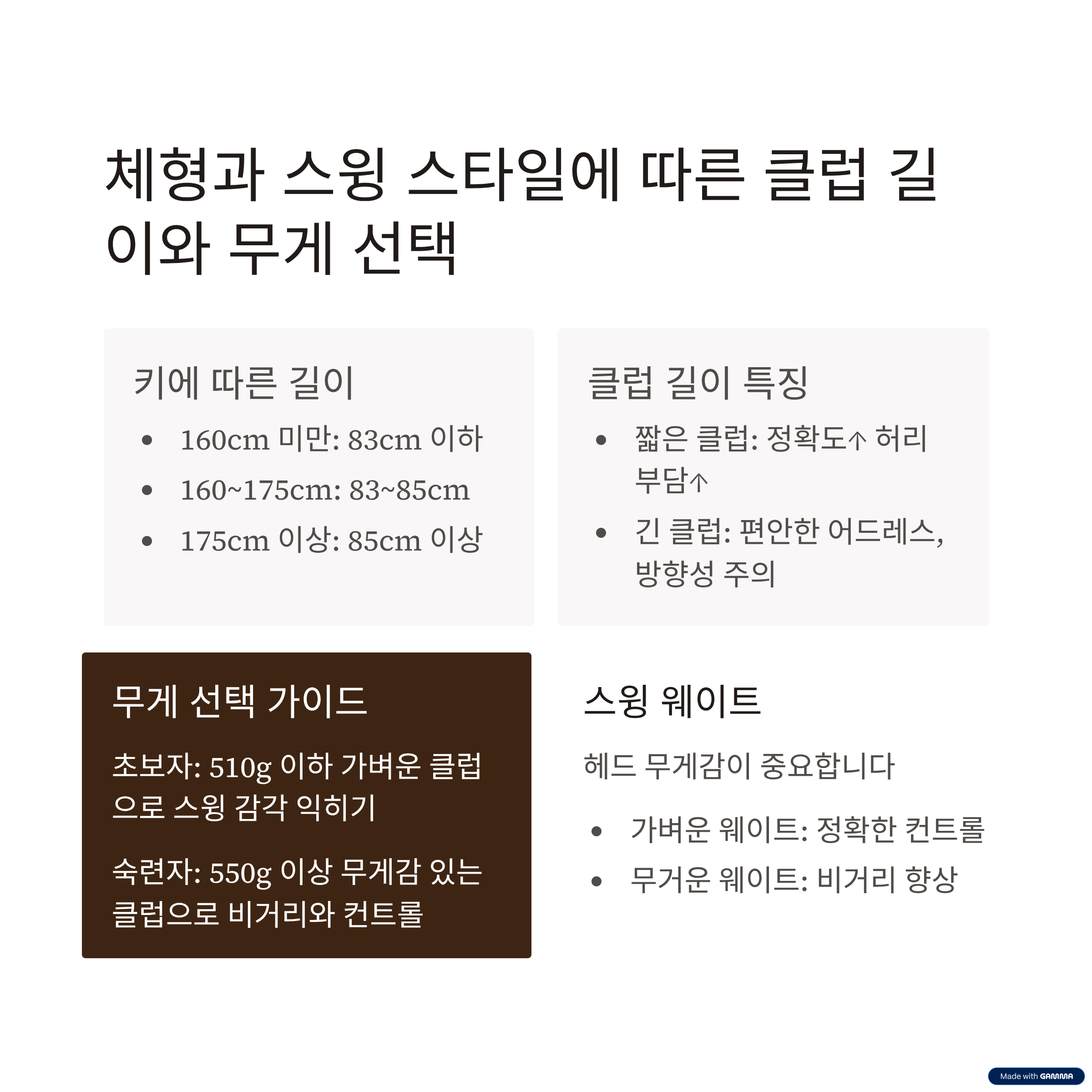 | 체형별 선택 | 신장과 스윙 속도에 맞춘 길이 선택 |
