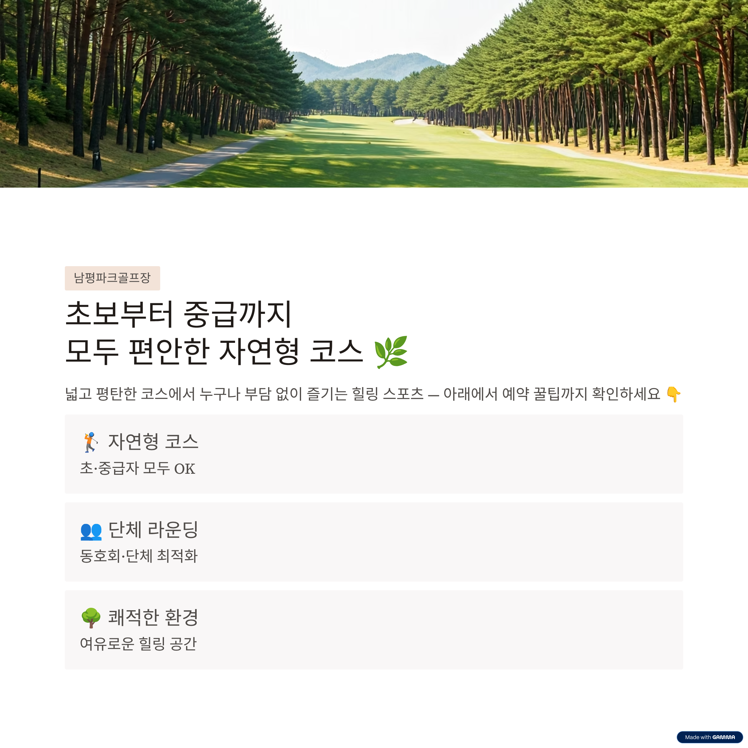 | 이용 형태 | 개인 및 단체 라운딩 가능 |