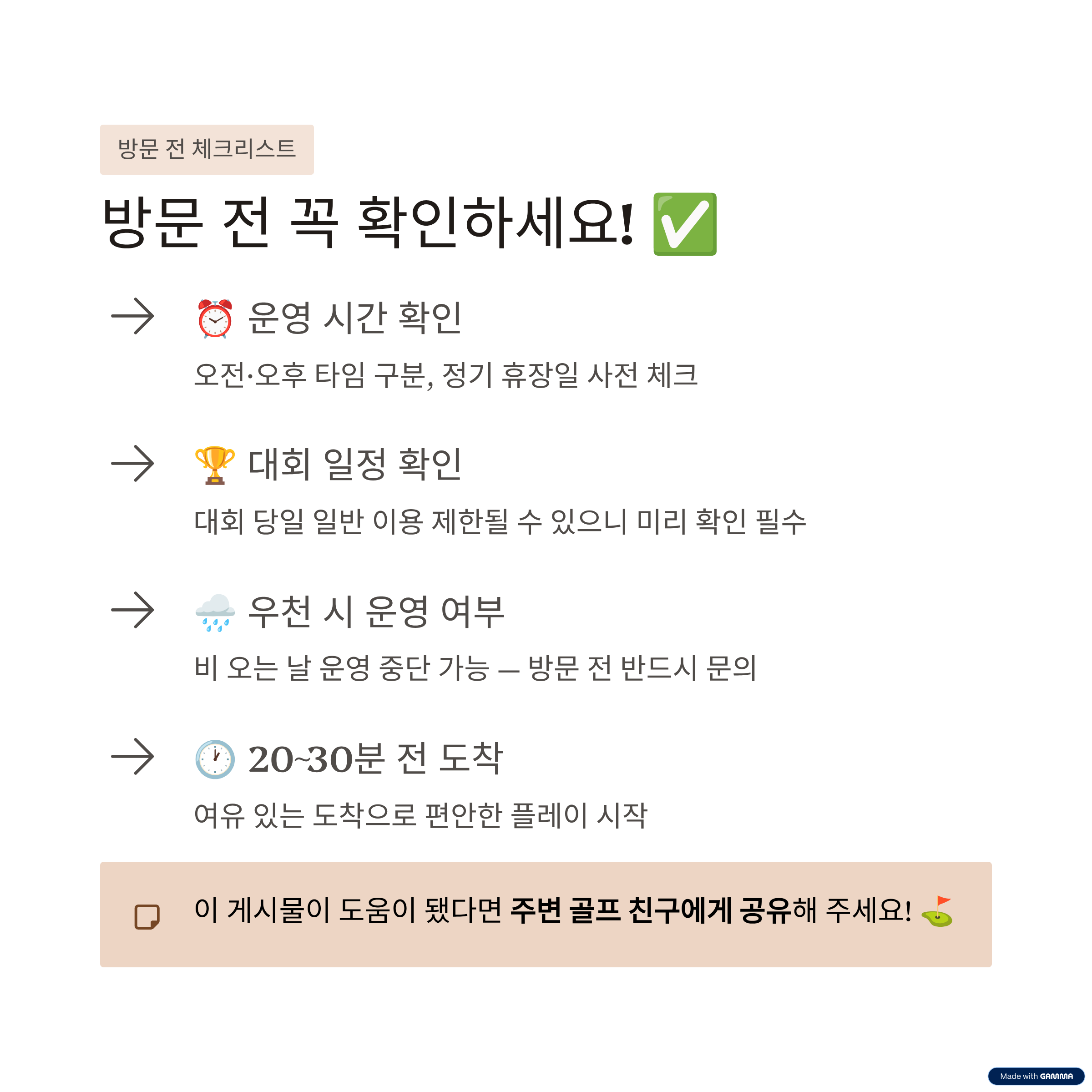 기본적인 휴식 공간과 편의시설이 마련되어 있어 장시간 라운딩에도 부담이 적습니다. 평일에는 비교적 여유롭게 이용할 수 있으며, 주말과 성수기에는 방문객이 늘어 대기 시간이 발생할 수 있습니다.