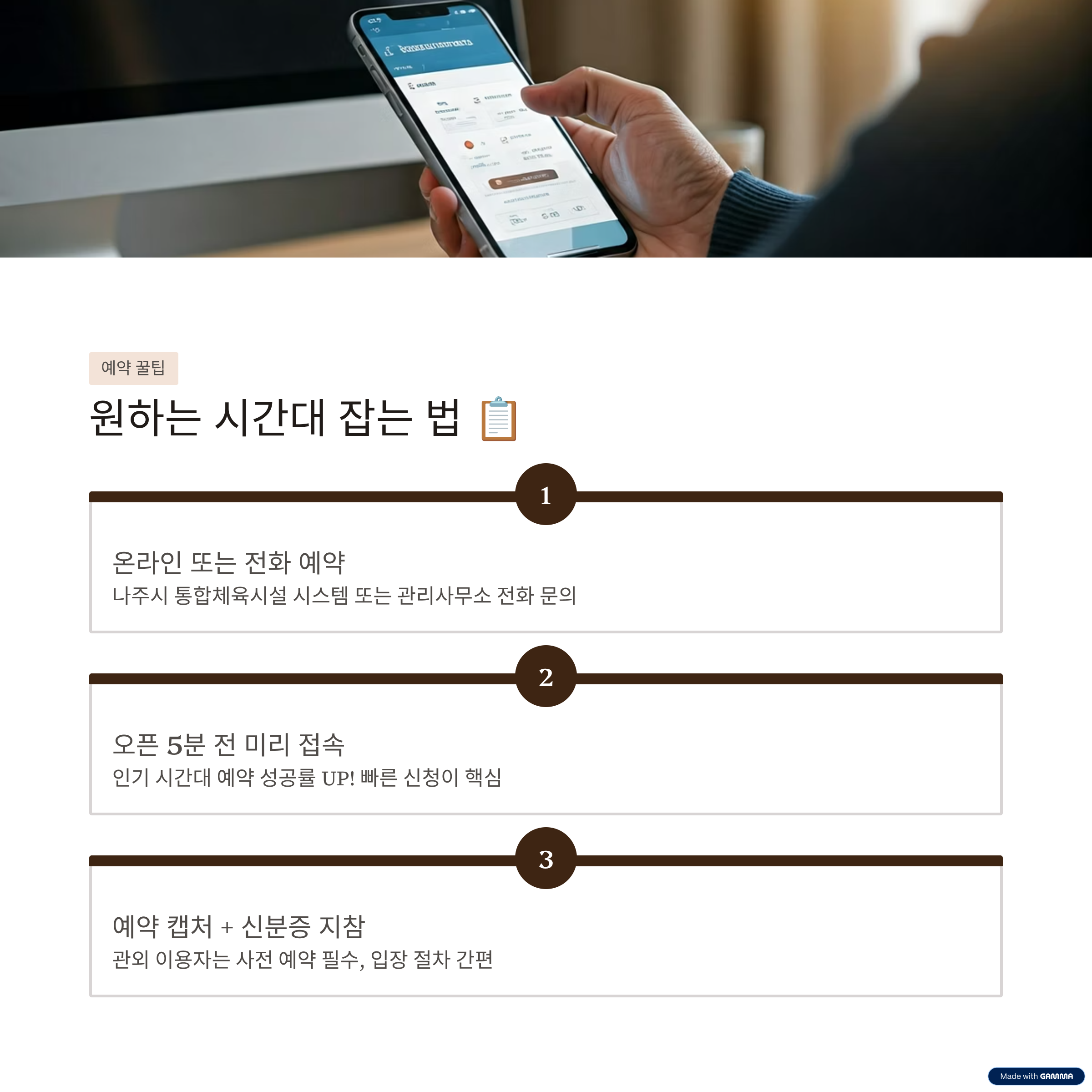 남평파크골프장은 일반적으로 관리 사무소를 통한 전화 문의 또는 지자체 체육시설 예약 시스템을 통해 이용 접수를 진행합니다. 정확한 운영 방식은 시기와 행사 일정에 따라 달라질 수 있으므로 방문 전 확인이 필요합니다.