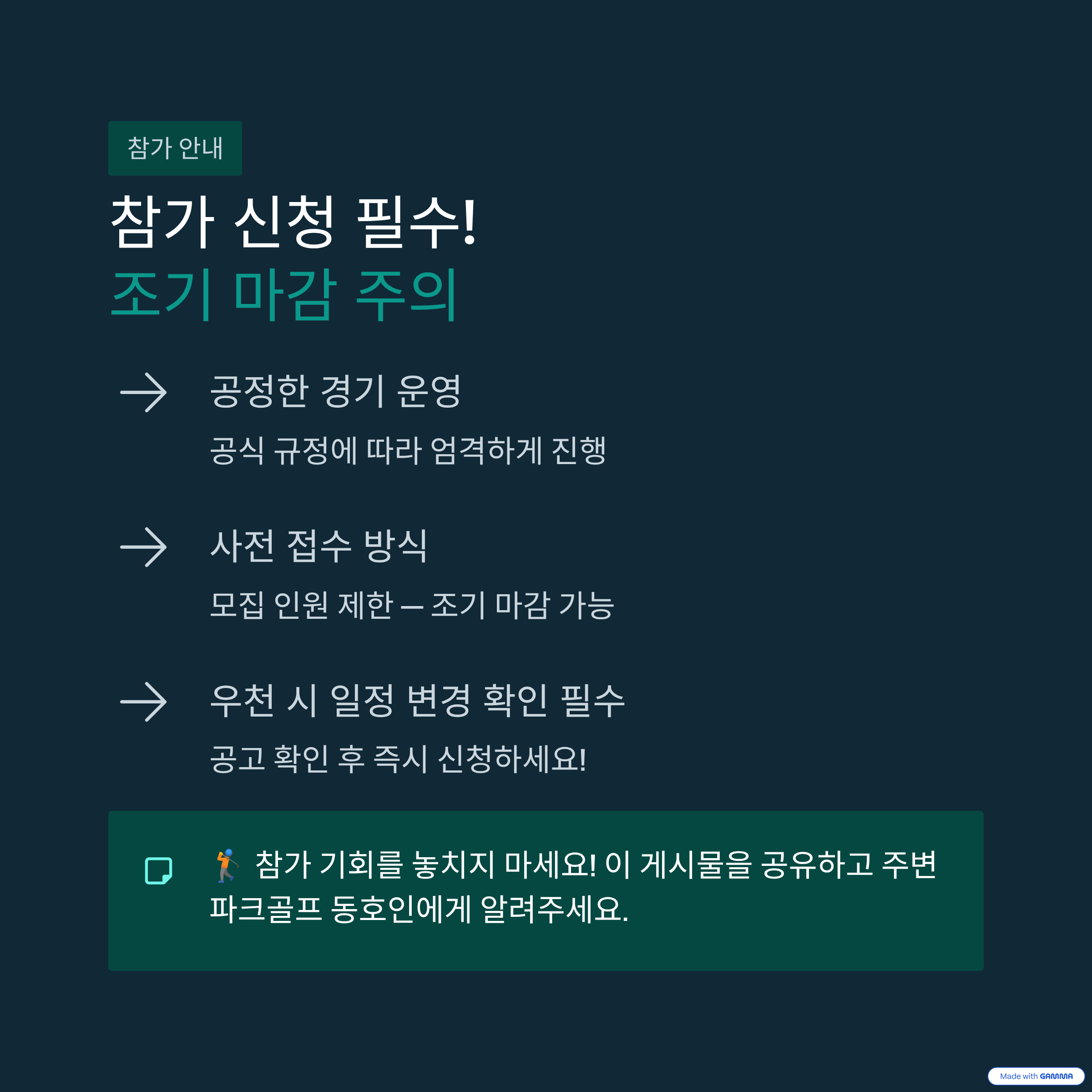 - 참가 대상: 전국 파크골프 동호인 및 선수