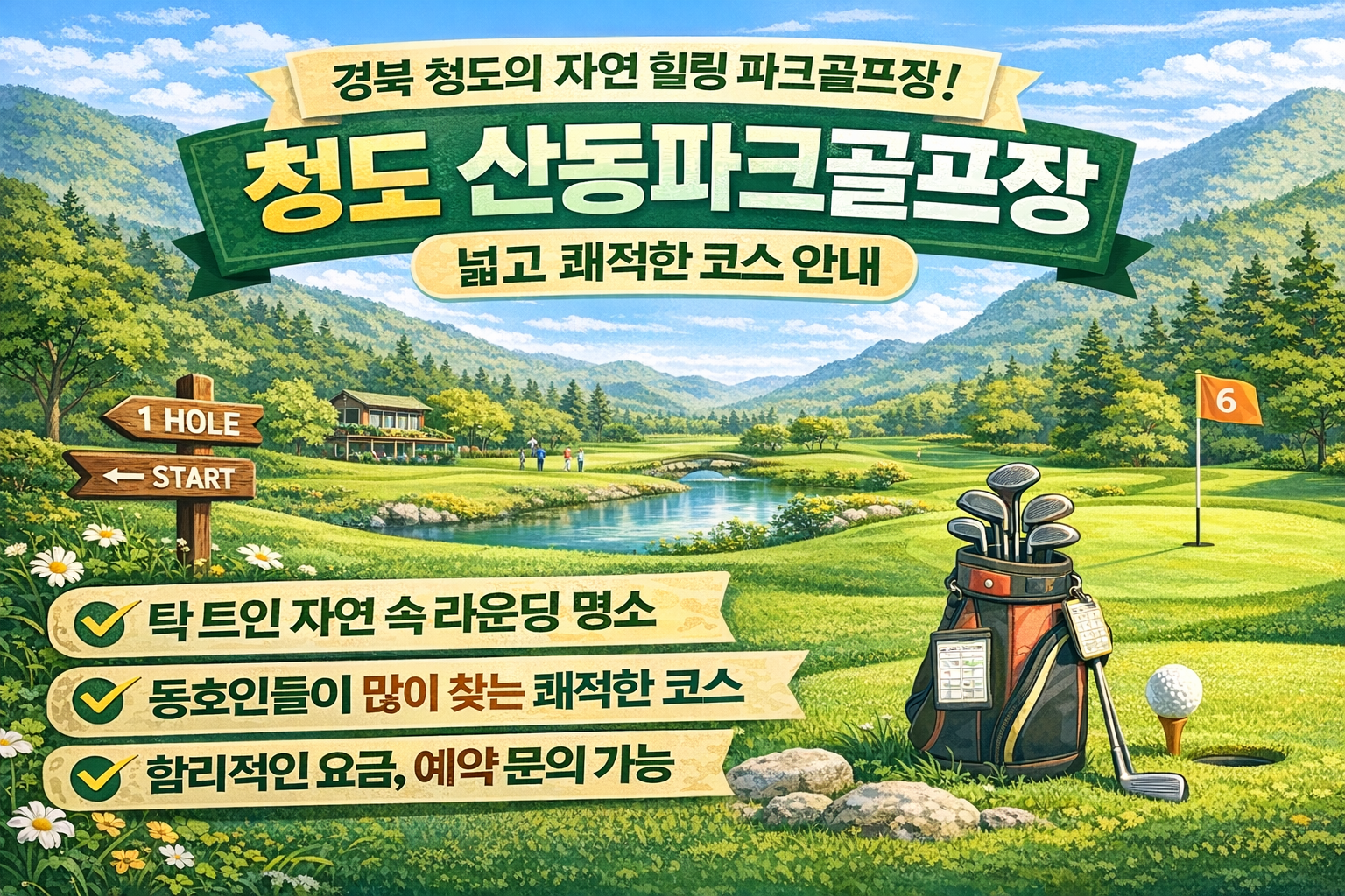 청도는 맑은 자연환경과 여유로운 분위기로 유명한 지역으로, 파크골프를 즐기기에도 좋은 조건을 갖추고 있다. 청도 산동파크골프장은 넓은 잔디 코스와 비교적 안정적인 시설을 갖추고 있어 지역 주민뿐만 아니라 외부 방문객들도 많이 찾는 장소다. 이번 글에서는 청도 산동파크골프장의 특징과 이용 방법, 그리고 예약 방법까지 자세히 알아보겠다.