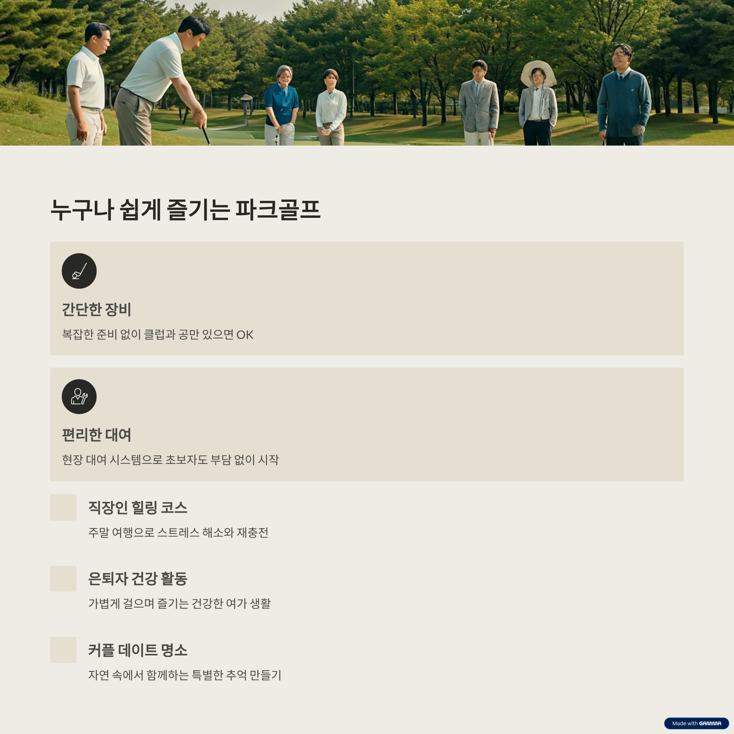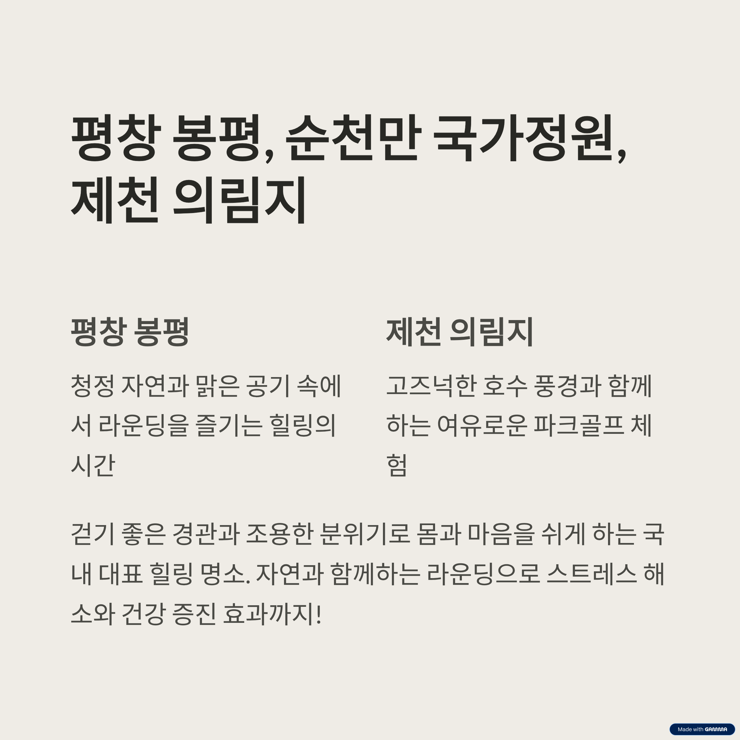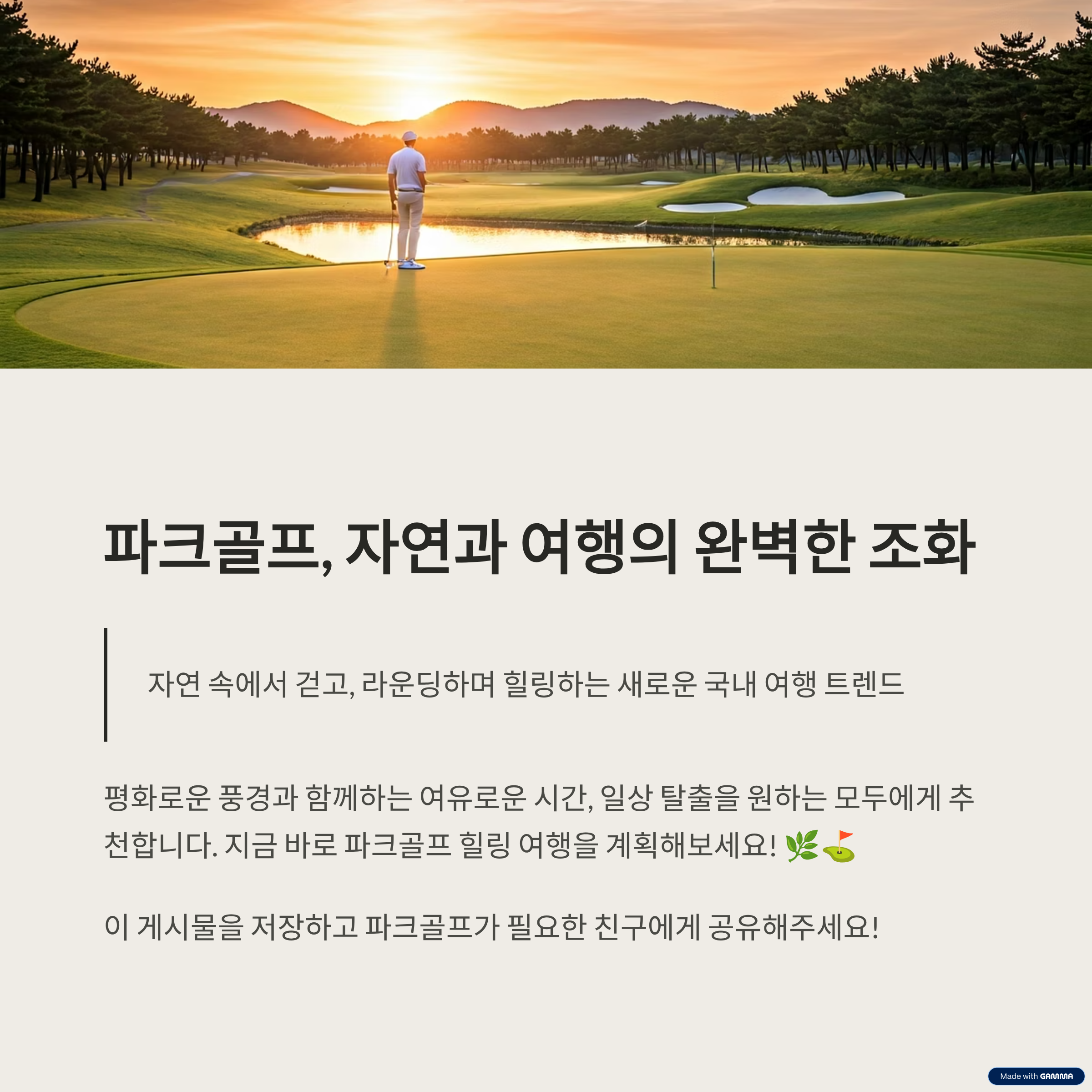 | 핵심 키워드 | 자연 속 라운딩, 건강한 휴식, 국내 여행, 비대면 힐링 |