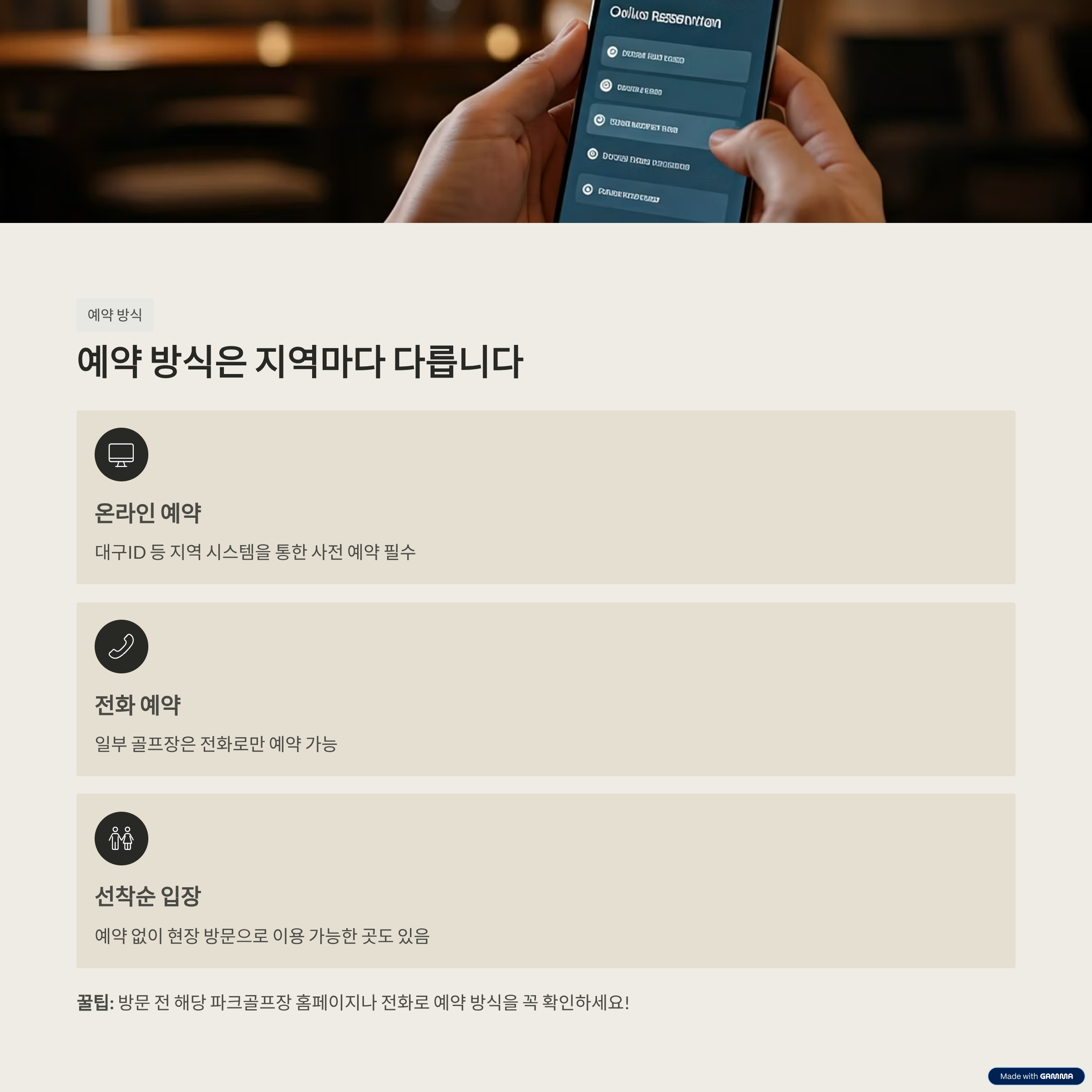 | 추천 대상 | 파크골프장 첫 예약자, 지역 이동 예정자, 단체 모임 예약자 |