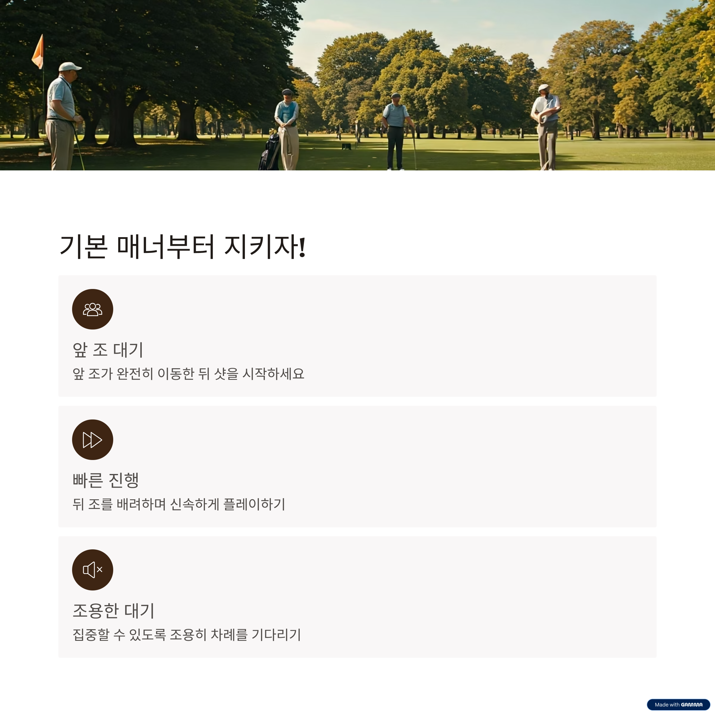 | 핵심 키워드 | 파크골프 에티켓, 기본 규칙, 초보자 예절, 골프 매너, 안전 수칙 |