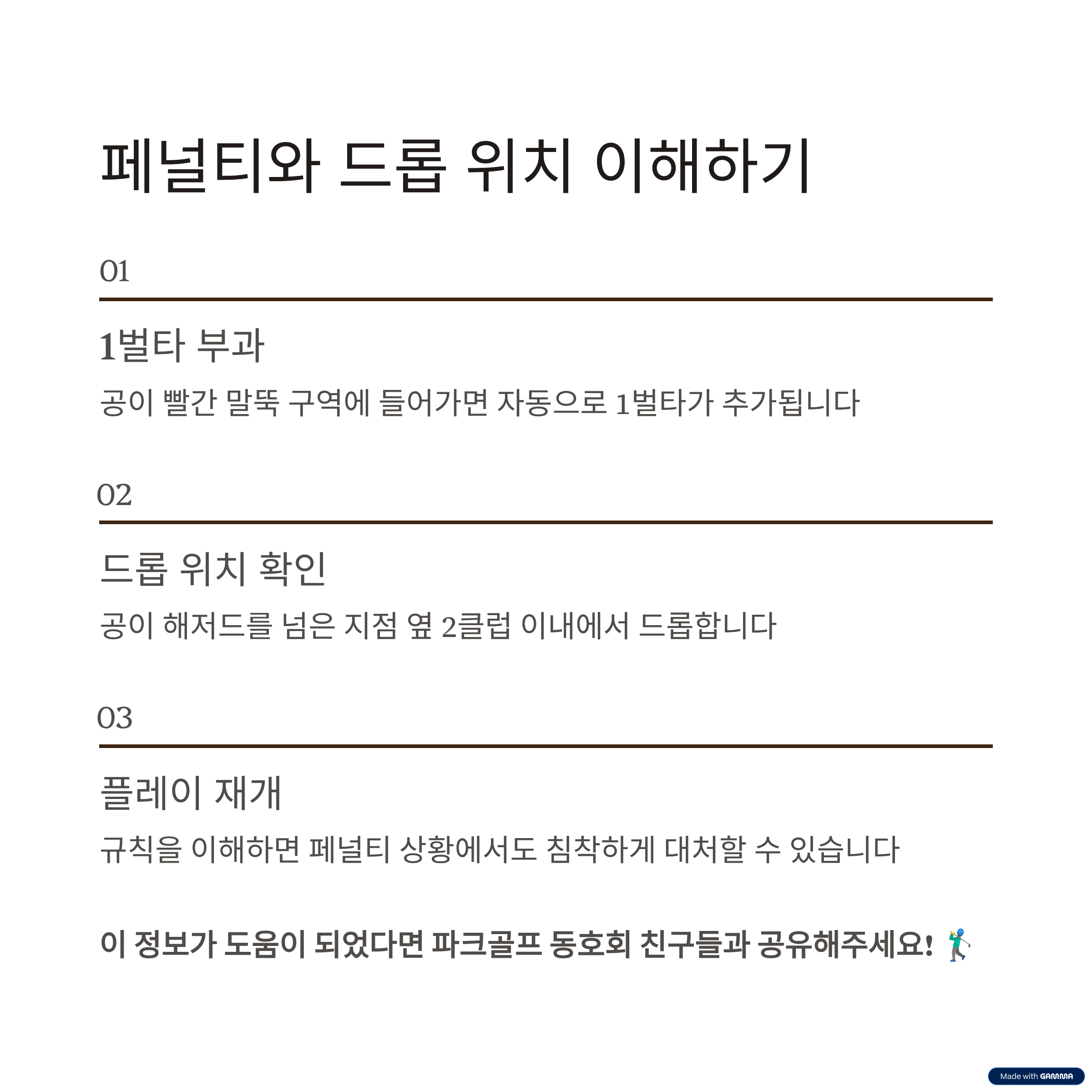 이번 글에서는 파크골프 코스에서 볼 수 있는 빨간 말뚝의 정확한 의미와 그 규정, 그리고 실전에서 어떻게 적용되는지를 상세히 알려드립니다. 이러한 규칙을 미리 알고 있으면, 페널티 상황에서도 당황하지 않고 대응할 수 있고 더 나아가 전략적인 경기 운영도 가능해집니다.