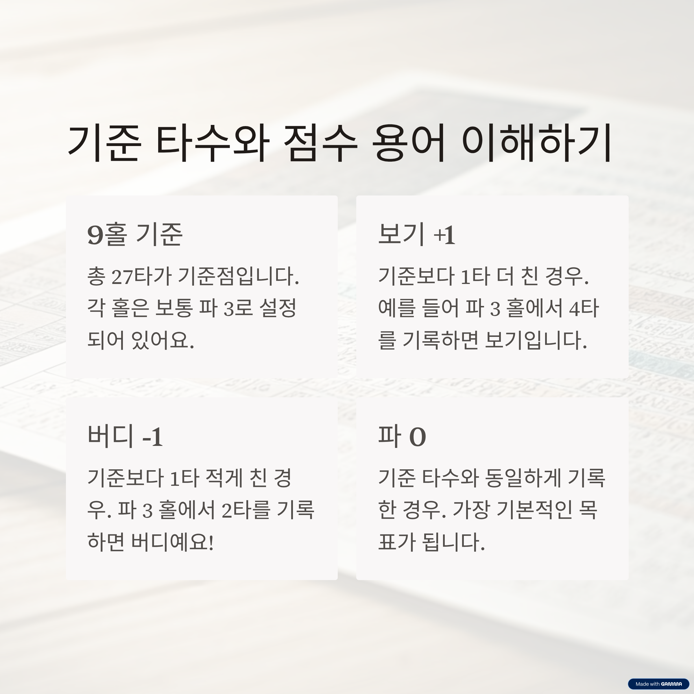 9홀 기준의 스코어 계산은 간단하지만, 매 홀의 흐름을 파악하며 전략적으로 플레이하는 것이 중요합니다. 자신의 평균 타수를 기록해두면 실력 향상 추이를 알 수 있고, 목표 설정에도 도움이 됩니다. 또한, 기록지를 사용하거나 앱을 활용하면 자동으로 오버/언더파를 계산할 수 있어 편리합니다.